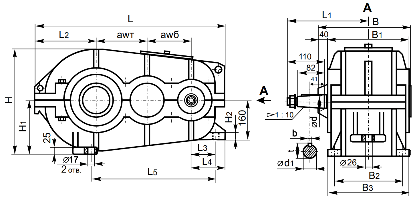 Цилиндрические редукторы ГПШ-400, ГПШ-500